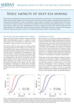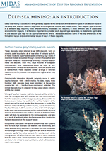 MIDAS is committed to supplying accessible information about the environmental impacts of deep-sea mining to policy developers, decision makers and stakeholder groups. A series of concise, informative briefing documents will be produced that cover key issues in the deep-sea mining field. The first of these briefs can be downloaded as low-resolution PDF documents below.